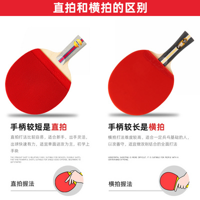 红双喜乒乓球拍T系列三星学生初学者直拍横拍3星兵乓球拍单拍1只